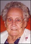 Beatrice Wolfe A memorial service was held at Johnson Funeral Home in Paynesville on Friday, March 8, at 7 p.m. Beatrice was born on Dec. 18, 1910, in Paynesville, the daughter of W.E. (Ted) and Louise (Siverling) Brown. She was baptized and confirmed at the Paynesville Methodist Episcopal Church. She graduated from Paynesville High School in 1928 and graduated from St. Barnabus Nursing School. In 1941, she volunteered in the U.S. Nursing Corps, serving her country during WWII in Europe. On April 18, 1946, Beatrice was united in marriage to Carl Lee Wolfe in Watertown, S.D. They made their home at Fort Hood, Texas, and Fort Bragg, N.C. from 1946 to 1991. In 1991 Beatrice returned to Paynesville and became a resident of 700 Stearns Place. In May 2000, she became a resident of the Koronis Manor. Beatrice was an active member of St. James Lutheran Church in Fayetteville, N.C. She also served on the American Red Cross Board, Mental Health Association of Cumberland County, and the Boy Scouts of America, receiving the Lamb Award from the Lutheran Council of America for years of volunteer service in Boy Scouts. She is survived by her daughter, Phyllis (Robert) Colter, of Holtville, Calif.; two grandchildren; sister-in-law, Carmen Brown of Paynesville; and nieces and nephews. Beatrice was preceded in death by her husband, Carl, on March 28, 1986; two brothers, Goodwin and C. Edwin Brown; and a sister, Ione Nehring.