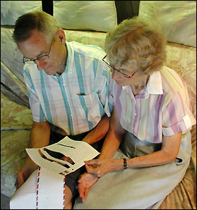 Nick and Mary Eoloff, who have owned a cabin on Rice Lake for the past 32 years, go to Israel a couple times a year. They aren't interested in sightseeing, though. They just want to see their son, who is a prisoner at Ashkelon Prison.Actually, Mordechai Vanunu is their adopted son, and they adopted him and then met him while he was behind bars. While he and the Eoloffs come from different sides of the globe, their anti-nuclear beliefs and Mordechai's prison ordeals have brought them together. Nick and Mary Eoloff read a letter from their adopted son Mordechai Vanunu at their Rice Lake cabin last summer. Vanunu - convicted of treason for revealing Israel's nuclear weapons program - has been in an Israeli prison since 1986. His letters to the Eoloffs are censored, and the censored passages are cut out. Mordechai Vanunu was born in Morocco to Jewish parents and emigrated to Israel, where he worked in a nuclear plant. He took pictures of the plant and told a London newspaper in 1986 about a secret Israeli nuclear weapons program, using pictures he had taken before quitting his job as well. He was convicted of treason in a closed trial in 1986 and sentenced to 18 years in prison. He was held in isolation for the first 11 and a half years of that prison sentence, said the Eoloffs, during an interview at their lake cabin last summer. Nick, born and raised in St. Paul, earned an undergraduate degree and a law degree from the University of Minnesota. Before retiring, he edited law books for West Publishing in St. Paul. Mary, who went to high school in Shakopee, graduated from St. Catherine's College and taught some Spanish at a Catholic girls school in St. Paul before raising six children.