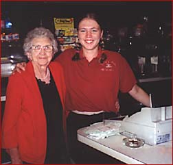 Allison Thompson (at right) and her great-grandmother, Mabel, (at left) have more in common than a last name. Both have spent portions of their teen years as waitresses at Tuck's Cafe. Mabel, 94, worked at the restaurant in 1924 and 1925, while Allison, 18, has been working there for nearly three years, beginning in 1997."I never thought at the time that I would see a great-granddaughter working there," said Mabel, of her two years on the job. " I feel kind of good about it," she added. "I thought it was real nice (when Allison got the job)."
