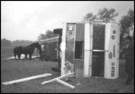 Five horses were loose after the storm. Three from the Pramann trailer and two that were cut loose before it hit. Two of the horses had injuries.All of the other horses appeared to have escaped unharmed from the storm.