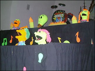 God's Allstar Puppeteers put on a puppet show at Nordland Lutheran Church on Sunday, May 18.The group consists of eleven kids between grades 4-9, and five adult leaders who each work on a different aspect of the show. The theme of last Sunday's performance was, "You are the light of the world." The group prepared for the show by meeting two Sundays a month since January. God's Allstar Puppeteers put on a show which featured music, dialogue, and special effects such as smoke and black lights. "Our goal as a group is to share the word of God with others in a new way," said Vicky Pearson, one of the group's leaders. Pearson says the puppets appeal to a wide variety of ages. "After a show, we often hear people say, 'I've never seen my kid sit still in church before!'" This is the fifth year the group has been together. While some current members are in their third year with the group, many are newcomers. The training process begins with becoming familiar with the puppet so that it can become life-like and take on a personality of its own, said Pearson. After that, the focus shifts to music and choreography. This year's show was the first to make use of black lights. This presented a new challenge for choreography, because the puppeteers had to learn to stay close enough to the black lights and hold the puppets at the correct angle.