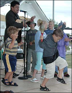 Kids from the audience came on stage, danced, and played Latin American percussion instruments during a presentation of Latin and Spanish music by Trio Folklorico. Christianson knows about immigration because she emigrated from the Netherlands 25 years ago. Having lived in Pelican Rapids for a quarter century, she got involved in welcoming others. "I know how important it is to come to a new country and be welcomed," she said. "I hope a lot of people can learn about different cultures and respect each other. Like that, we can grow together," said Miguel Cabrera, a Mexican-American who represented the Hispanic population of the community in the flag raising ceremony. (Also raising the flag were members of the American Legion and Margot Gottwald, who immigrated to the United States from Germany in 1957.) Cabrera was born in North Dakota, raised in Los Angeles, and currently works at the Master Mark Plastics plant in Paynesville. The idea of the festival made him feel welcomed by the community, he said. Minnesotans are very nice, he said. "They respect me, and I respect them," he said.