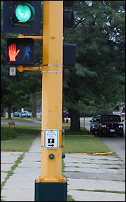 ![]() The church bells atop the St. Louis Catholic Church operate electronically. They chime every hour and bong on the hour. At noon and 6 p.m. daily, the bells play a tune. | ![]() Even the pedestrian cross walk signals at the intersection of Washburn Ave. and Hwy. 23 makes different sounds depending on which way it is safe for pedestrians to cross. |