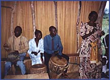 This is an African United Methodist Church where the musicians performed in a bamboo structure with a tin roof and dirt floor.