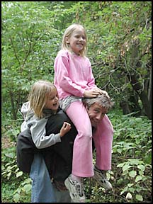 Tom giving a couple Trail Guards a piggy back ride. The real rewards, though, come from working with kids each week. These rewards, he stressed, are endless. It's "all a labor of love," he said of his volunteer work with the group. "I absolutely enjoy it, or I wouldn't do it." Members of the Trail Guards agree that Koshiol deserves the award. James Jansen, 15, in his seventh year as a Trail Guard respects Tom's dedication. "He could be fishing or spending time with his family," Jansen said, but instead he comes every Saturday to work at the nature park. "I like to come because you get away from the town," added Jansen. "It's a miniature Boundary Waters." "Tom is nice and he's my friend," added Nikki Garvick, 9, a first-year Trail Guard. "I like to come here to have fun and do chores." Friendships made among the Trail Guards keep the kids coming back each week, they say. "I like to see my friends," said second-year Trail Guard Sarah Anselment, 12. "I usually wake up early (on Saturdays) and I just want to come here." A KARE-11 camera team came out to Paynesville in July to shoot video of the group working and playing for a two-minute video clip of the organization that will be shown Saturday night. Part of the video will be from the group's annual canoe and kayak picnic cruise on Lake Koronis. Writing a 45-second speech to give on live television was difficult for Koshiol to do. His first draft was twice as long as it could be, and he found himself cutting names of people he wished he could have thanked. "There are a lot of people who have done so many things," he explained. "I hope they know that I haven't forgotten their contributions." The Crow River Trail Guards have become so successful, and so involved, that Koshiol can't do it all himself anymore. The organization now employs five people to handle the charitable gambling that funds it, to organize the Boundary Water canoeing trips and white-water rafting adventures that reward the youth for their work, and help supervise on Saturday mornings. Koshiol still volunteers his time.