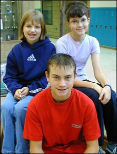 Students of the Month for October were announced recently at the Paynesville Area Middle School.The students are selected by their teachers for their participation in class and how well they get along with their peers. October Student of the Month are: (front) Jamie Paul; (back) Chelsey Hansen and Kristi Louis. Normally, the teachers select a boy and a girl from each grade for the honor, but this time they selected only one representative for each grade. Selected from the sixth grade was Chelsey Hansen, daughter of Mel and Bonnie Hansen. Her teachers consider Chelsey a hard worker, friendly, responsible, and a good student. "I get good grades and try hard in school," Chelsey said about her selection. She was surprised and happy about receiving the honor. She enjoys playing basketball, volleyball and softball. Selected from the seventh grade was Kristi Louis, daughter of Adrean and Jean Louis. Her teachers feel she takes pride in her work, and that she is self-motivated, well organized, and quiet but friendly. "I was surprised to be selected," Kristi said. She credits handing in her homework on time to her receiving this honor. Kristi is a member of the middle school band and choir and competes on the seventh grade volleyball team. Representing the eighth grade is James Paul, son of Rick and Jill Paul. His teachers consider him a friendly, responsible student with good leadership qualities. James was surprised and happy to receive the honor. "I would like to thank Mr. Spanier for this honor because he is my favorite teacher," he said. "I paid attention in class and handed in all my work," he added. James enjoys sports, especially, hockey, football, and baseball.