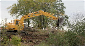 Heavy-equipment workers cleared brush from below the golf course to make room for the Lake Koronis recreational Trail last week. This section of trail will be built with $365,000 in funds from the state bonding bill. Also, in 2007, the city of Paynesville, Paynesville Township, Meeker County, and Stearns County have committed to spending $80,000 apiece to extend the Lake Koronis Recreational Trail along Baywater Road and south around the lake on CSAH 20. (Meeker County is providing the engineering work as well as their share of the project costs.)
