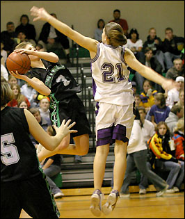 STATISTICS: 3-pointers - 4 Hess 2; Lieser 1; Mackedanz 1; Rebounds - 31 Hess 7; Wendlandt 6; Bridgette Johnson 5; Assists - 21 Hess 11; Kendra Johnson 3; Lieser 3; Steals - 15 Kendra Johnson 4; Blocks - 3 Wendlandt 2. Morris 50 - Angie Jallo 7-0/4-14; Brittany Kill 4-5/10-13; Mandi Kloos 3-1/2-7; Amber Heck 2-2/2-6; Amanda Dierks 2-1/2-5; Whitney Dierks 2-0/0-4; Tracy Kopel 0-1/2-1; TOTALS: FG 20, FT 10/22, 3's 0.