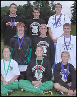 Three girls ( front row: Melissa Bachman, Tiffany Rausch, and Jenny Hess) from the Paynesville track team qualified for the state meet with their performances at the section meet at St. John's University Thursday. The Bulldogs, as a team, matched their highest section finish in school history by placing fifth. They previously finished fifth in 1998.